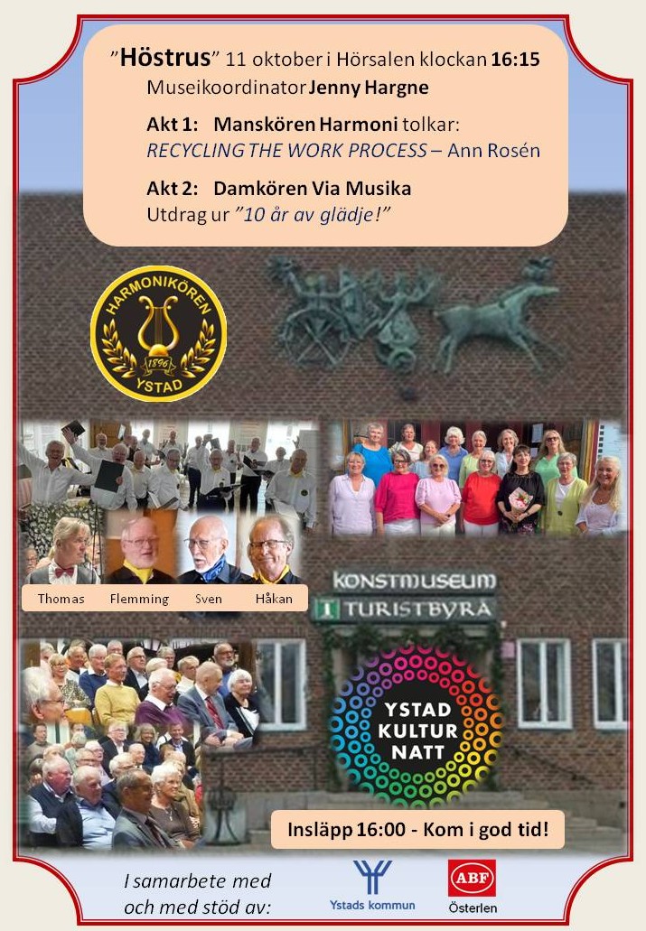 HARMONIKÖREN är en körförening hemmahörande i Ystad. Manskören har funnits här sedan 1896 och numer har föreningen även en damkör. (Körerna sjunger dels var för sig och dels tillsammans). Vi vill vårda den svenska körtraditionen & samtidigt utveckla och förnya denna musikaliska uttrycksform. Sång och musik under trivsamma former kan ge dig det extra du behöver!